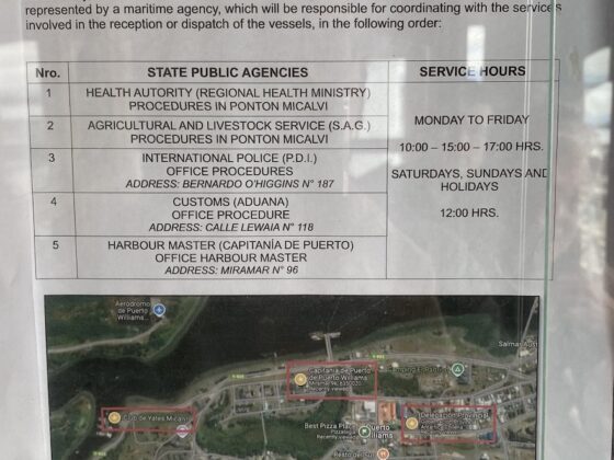 Formalités d’entrée au Chili En approche de Puerto Williams, venant d’Ushuaia, le samedi 28 décembre vers 13h00, nous appelons par VHF la …